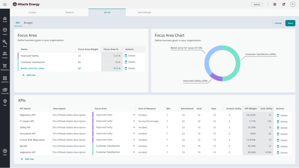 Hitachi Energy (formerly ABB Hitachi Power Grids) is one of the world's largest manufacturers of high-voltage equipment for electricity transmission and distribution. The asset management division needed a unified platform to help grid operators plan, track, and optimise asset lifecycles — from investment through maintenance, upgrades, and replacement.