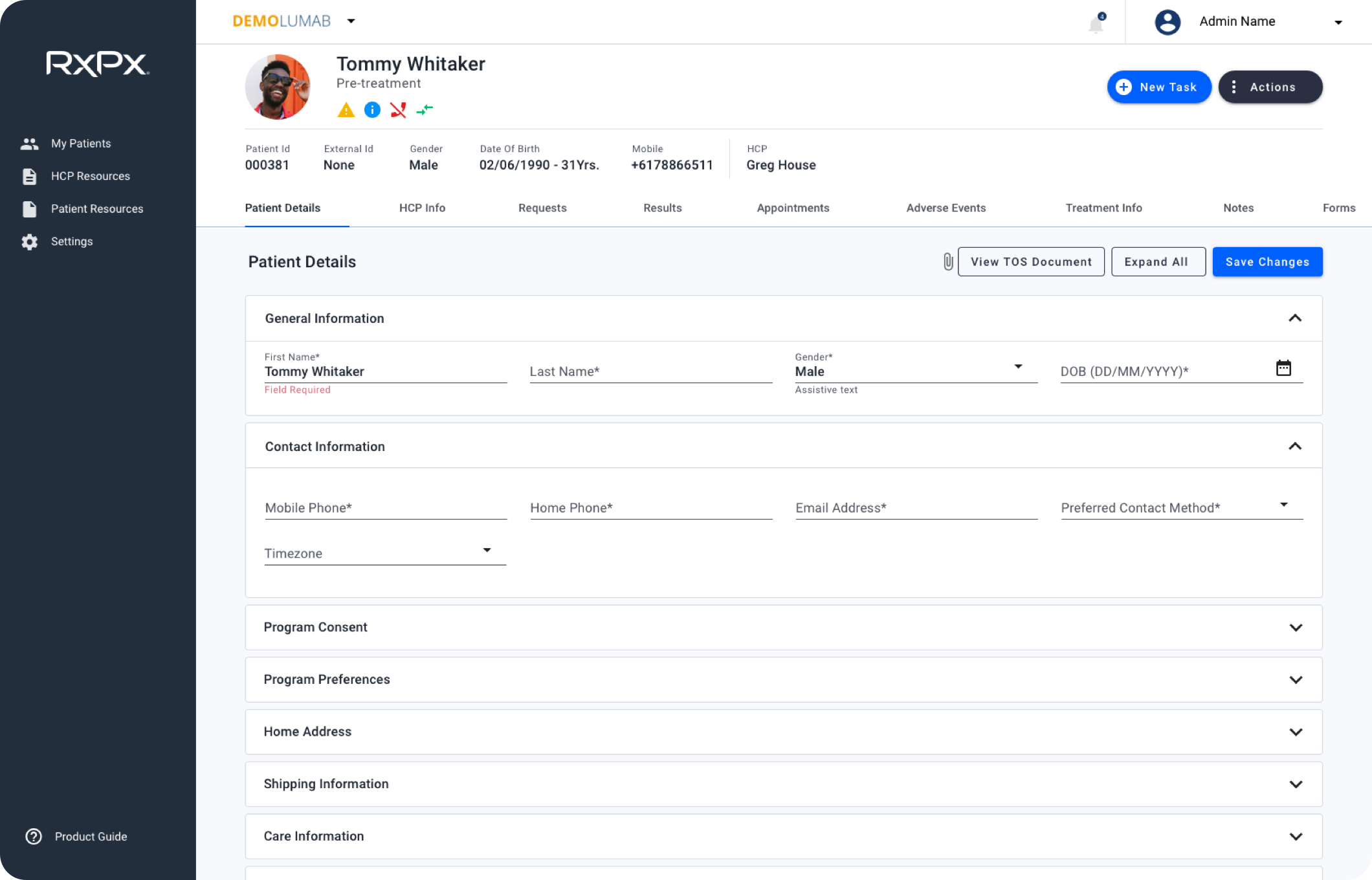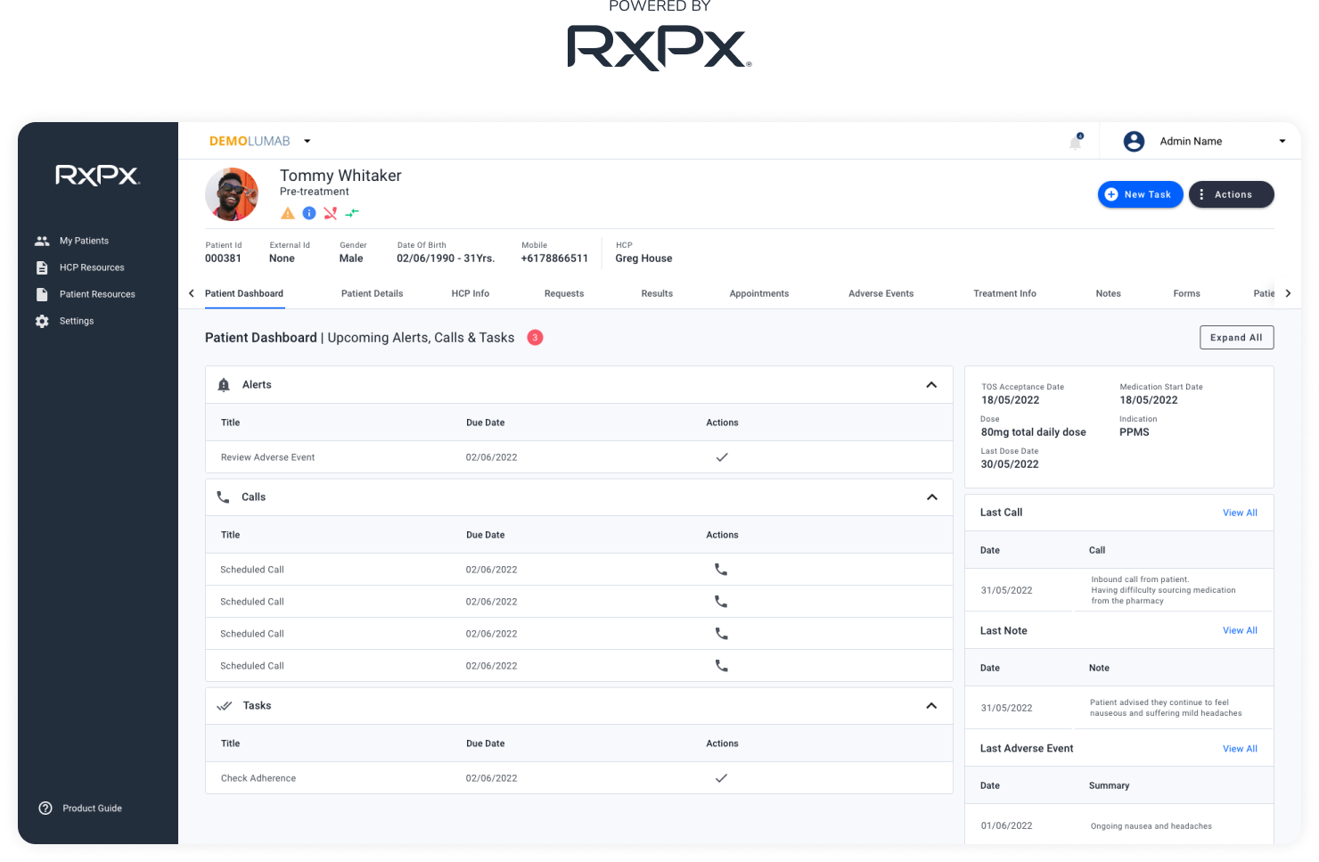 "The new patient domain is so much cleaner. I can actually see what I need without clicking through ten tabs." — Nurse, RxPx