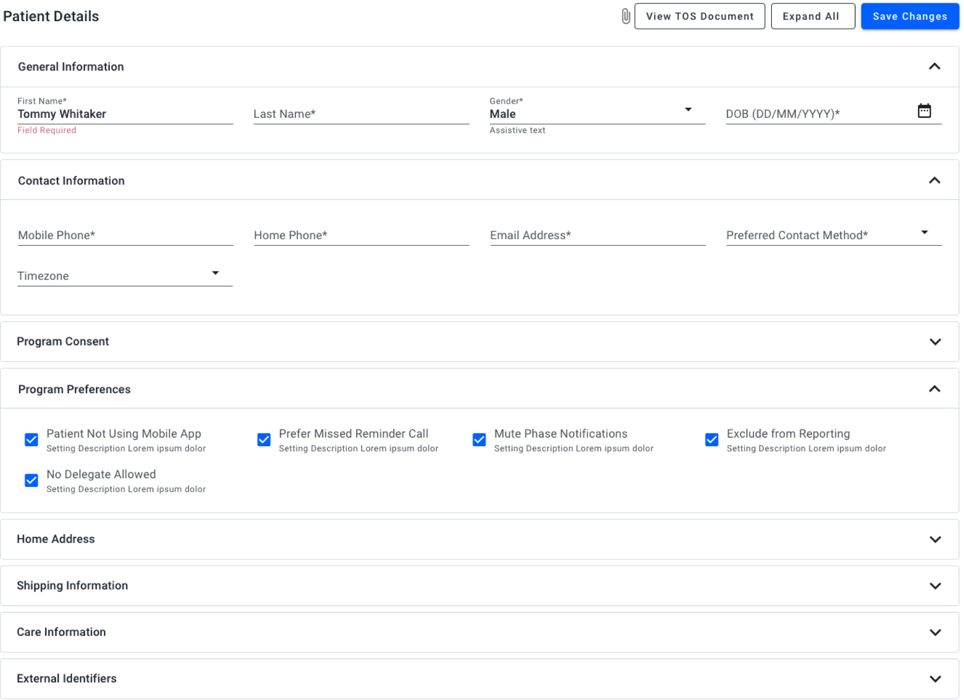 Simplify the patient domain: better IA, grouped forms, and fewer surface-level actions so users can find and complete tasks without getting lost.